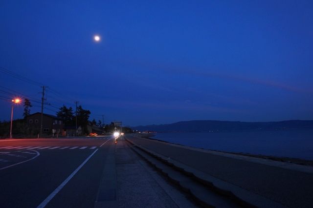雪国の夜の底は白いのですが、海岸線の夜の底は深い群青色なのでしょうか。