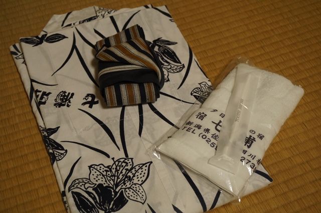 お部屋のアメニティは、浴衣とタオル。バスタオルは無いけれど、お風呂場に自由に使えるタオルがあるのでなんとかなります。
