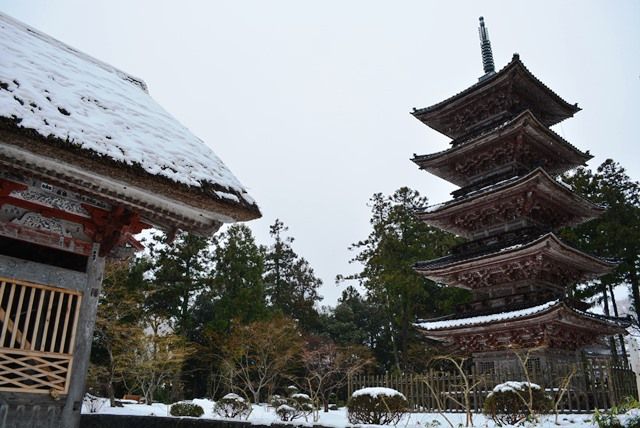 中でも、清水寺(きよみずでら)を模した清水寺(せいすいじ)、長谷寺(はせでら)を模した長谷寺(ちょうこくじ)などが印象的ですが、日光東照宮の五重塔を模した木造の高さ24.11mの五重塔が建つお寺、阿仏房妙宣寺(あぶつぼうみょうせんじ)もあります。新潟県内では唯一の五重塔で国の重要文化財に指定されているそうです。