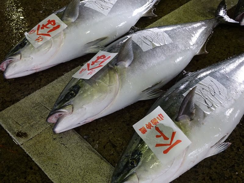 出世魚として有名なブリ。佐渡では大きさによってイナダ(1kg目安)、ワラサ(2~3kg目安)、ブリ(4kg~目安)と呼び名が変わります。回遊魚のブリは夏に北の海でエサを蓄え成長し、晩秋に南下を始めます。