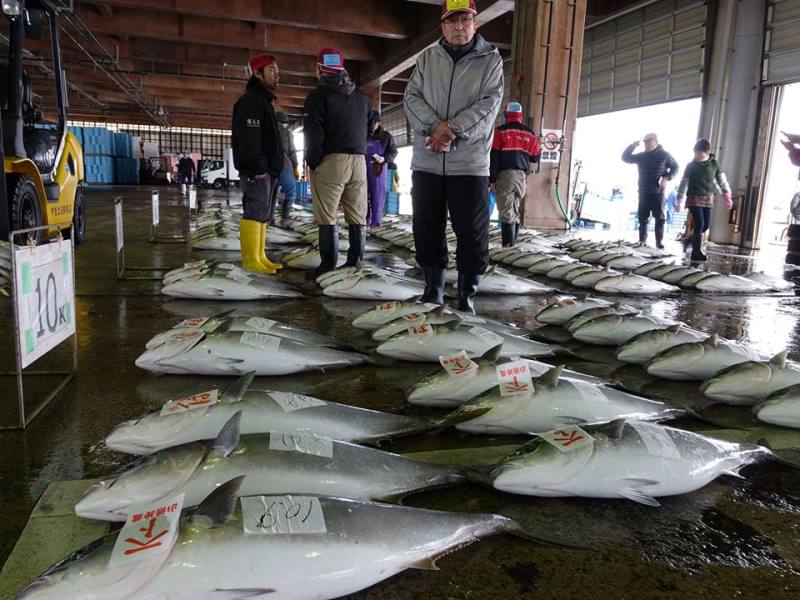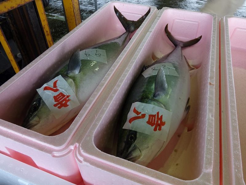 脂質15%以上のブリを厳選して、佐渡一番寒ブリといい、朱鷺色の発砲スチロール箱に入れて出荷されるそうですが、この日のブリの脂質はなんと20%超えとか。
