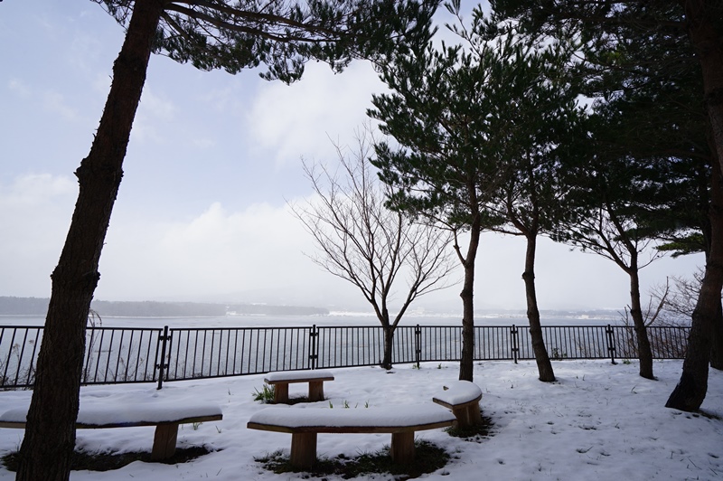 とある雪の積もった朝、加茂湖を眺めに立ち寄ってみました。