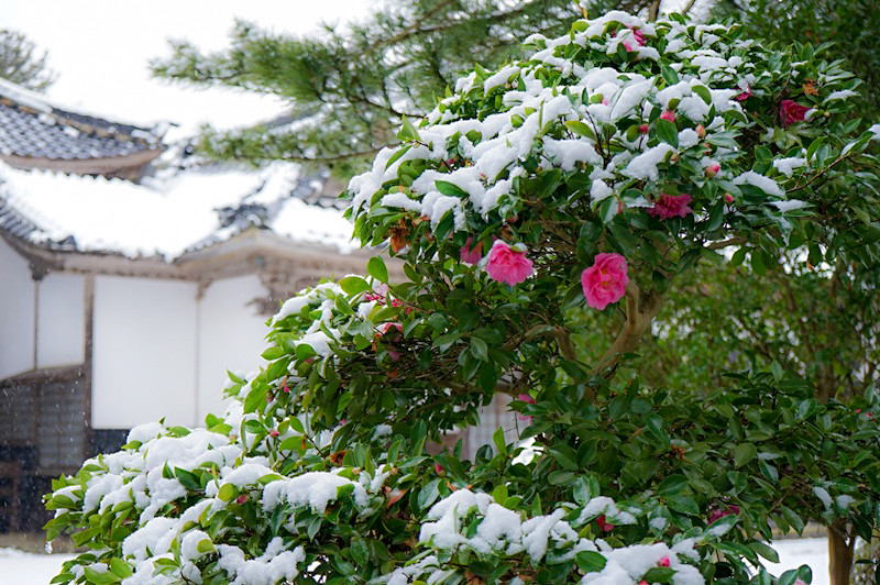 少し重たげな雪を纏いながらしっかりと美しい花を咲かせていました。