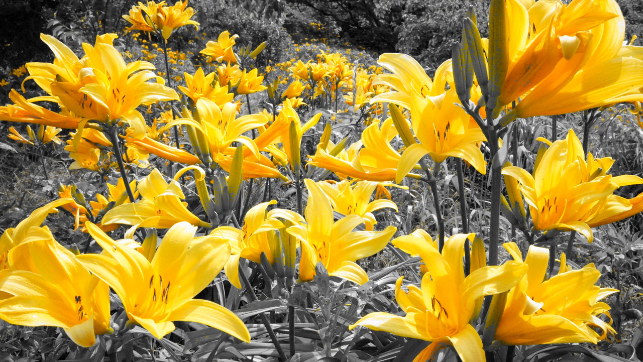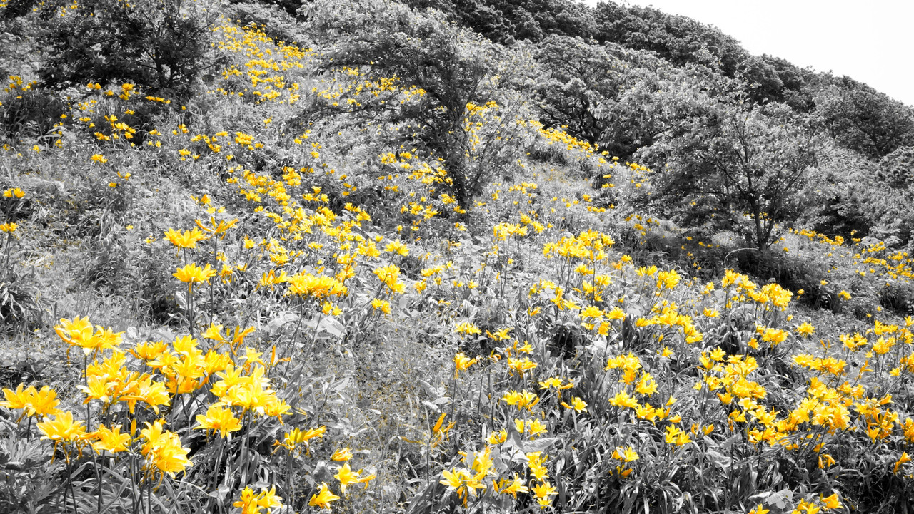 群生具合がわかるように、黄色だけ残してモノクロ撮影。