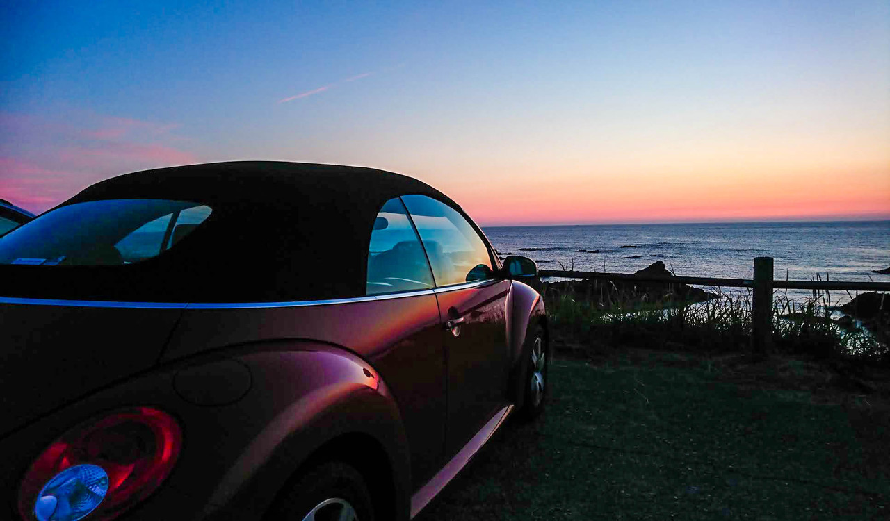 いつも、レンタカーでは軽自動車を借りておりましたが “オープンカーがあるらしい”とのうわさを聞いてオープンカーを予約してみました。