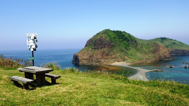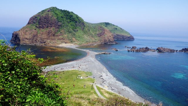 2ツ岩が何に見えるか 気になっていて うっかり海の色の美しさを見落とすところでした。