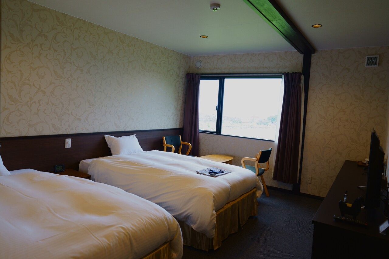 「え?おぎの湯って日帰り温泉じゃないの? 泊れるの?」という島内の方も多いと思います。おぎの湯、泊まれるんです。しかも、快適な設備と驚くほど快適なベッドがある洋室(ツイン)のお部屋もあります。