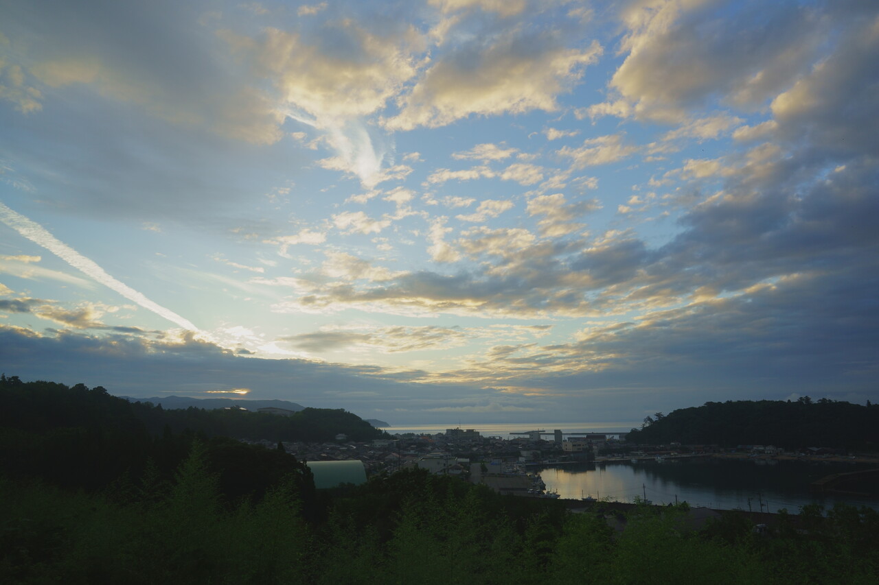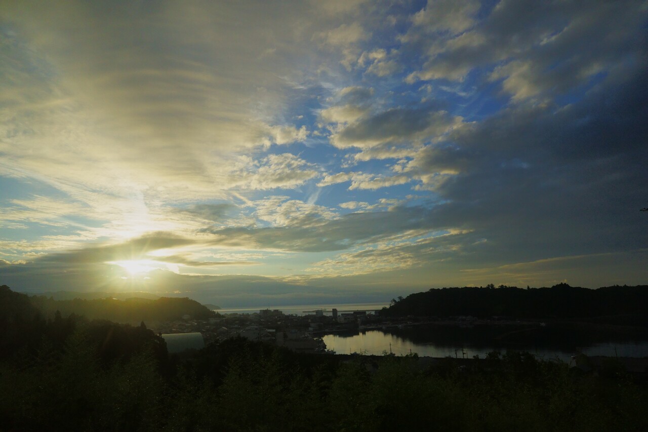 写真を撮って二度寝するはずでしたが、分厚い雲から顔を出す太陽を見るまでは眠れん!と、しばらく窓際の椅子に座ってカメラを構えて待つことに。